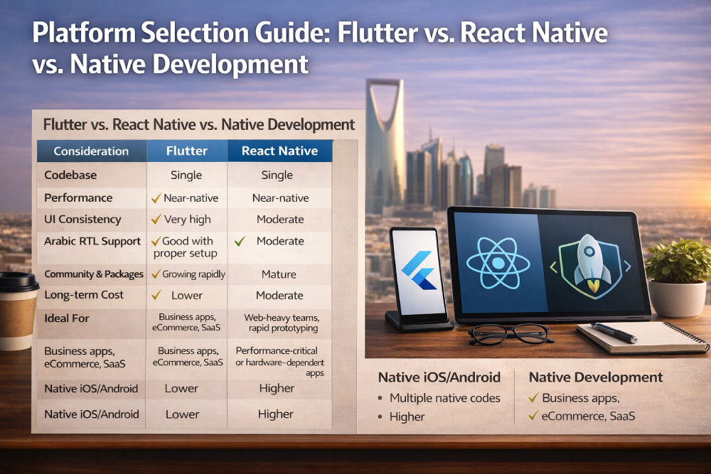 For most Saudi SMEs and growth-stage startups building customer-facing or operational apps, Flutter offers the strongest cost-to-performance ratio at this stage of the framework's maturity.